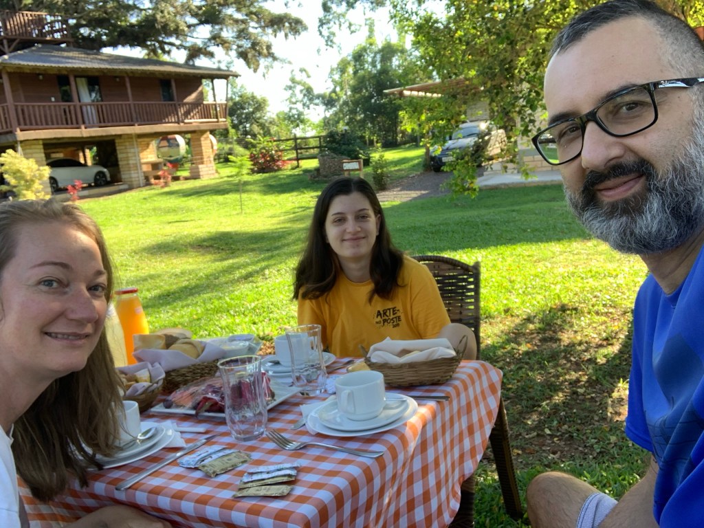 Chalés individuais com cozinha e café da manhã servido na varanda formaram a dupla pra deixar a gente (nós 3) um pouco mais seguro em encarar 500 km de estrada e tirar uns dias de folga na virada do ano.
